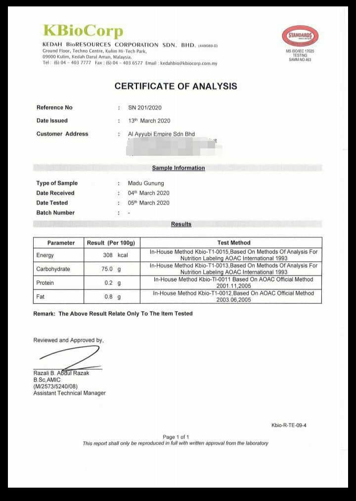 "Madu rasa lembut ditekak, badan rasa ringan & kesihatan lebih baik. Alhamdulillah"