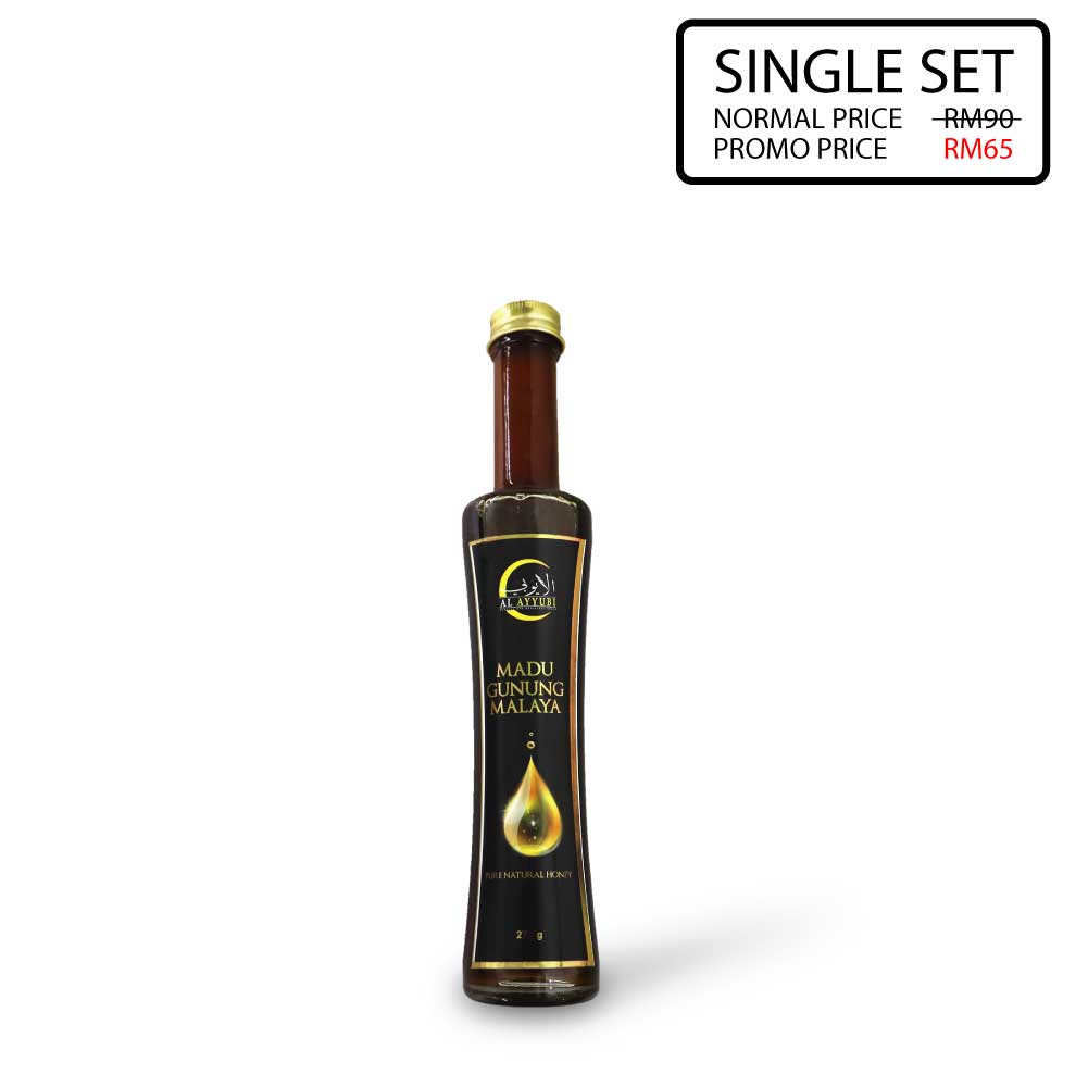 Berat isi kandungan madu gunung Malaya ialah 270g satu botol.
